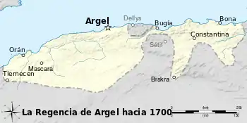 La Regencia de Argel fue un estado centrado en Argel, que cubría todas las tierras del norte de la moderna Argelia. Fue establecido en 1516 cuando Jeireddin Barbarroja capturó la ciudad. La regencia de Argel fue el centro principal del poder otomano en el Magreb. Rivalizó y desplazó a los Ziyánidas, a los Hafsidas y las posesiones españolas en el norte de África, y fue un importante centro de piratería del Mediterráneo hasta la conquista francesa de Argelia en 1830.[1]