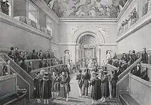Estos últimos, entre los que había antiguos diputados en las Cortes del Trienio Liberal y que habían pasado varios años en el exilio, utilizaron el derecho de petición que les otorgaba el Estatuto para exigir al Gobierno, entre otras medidas, el reconocimiento de «los derechos políticos de los españoles» en los que se apoya «todo gobierno representativo». La respuesta del Gobierno fue disolver las Cortes con anticipación el 29 de mayo de 1835, finalizada una tormentosa sesión en el Estamento de Procuradores tras la cual Martínez de la Rosa «fue víctima de varios intentos de agresión por parte de grupos de exaltados».[19] Pocos días después, Martínez de la Rosa dimitió.[20]
