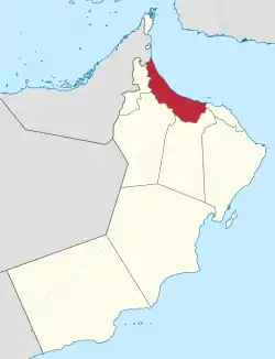 La región, también conocida como la Costa de Al Batinah, es una de las regiones más habitadas de Omán.