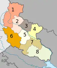 La región de Kajetia se dividió hasta 2006 en ocho distritos (რაიონი, raioni ): Ajmeta, Gurjaani, Dedoplistskaro, Kvareli, Lagodeji, Sagarejo, Signagi y Telavi. Desde ese momento los distritos pasaron a ser comunidades o municipios (თემი, t'emi):