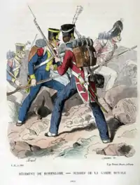 En febrero de 1821, pasó a llamarse Régiment de Hohenlohe en honor a su fundador y luego comandante en jefe Coronel-Príncipe Louis Aloysius de Hohenlohe.[2] El regimiento participó en la intervención francesa en España de 1823 como parte del 4º Cuerpo del Coronel-Príncipe Hohenlohe del ejército de los pirineos (Armée des Pyrénées). En 1829, el homónimo del regimiento, el coronel Hohenlohe, murió.