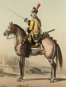 Dragón del Regimiento Lusitania en 1763 según Serafín María de Sotto.