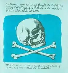 Su distintivo permanente es la calavera con tibias cruzadas, otorgada por el rey Felipe V, tras la batalla de Madonna del Olmo y ganada en combate por el arrojo y valor de los componentes del Regimiento (fallecieron dos tercios de la Unidad), los «Dragones de la Muerte».