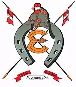 Emblema del regimiento ostentando el lema del Arma de Caballería: "Desde el origen con gloria".