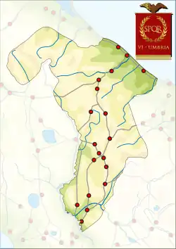 ![]() Mapa de la Regio VI Umbría et Ager Gallicus | |||||||||||||||||||||||||||||||||||||