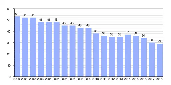 | Gráfica de evolución demográfica de Reguengo entre 2000 y 2018 |