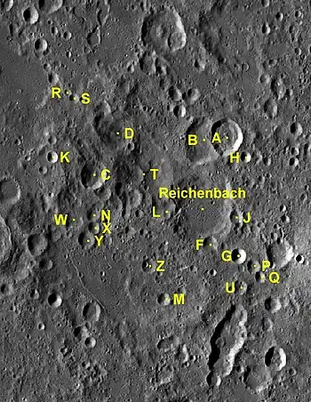 Por convención estos elementos son identificados en los mapas lunares poniendo la letra en el lado del punto medio del cráter que está más cerca de Reichenbach.