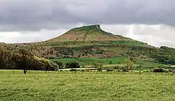 - North York Moors.- Los Moors son una de las mayores extensiones de parameras de brezo en Gran Bretaña. El páramo constituye la superficie de un relieve tabular y se asienta sobre suelos calizos, con una escasa vegetación, basada generalmente en el brezo y el matorral. La ausencia de masa forestal produce una fuerte amplitud térmica, vientos constantes y una hidrografía escasa, ya que el agua se filtra por la porosa roca calcárea drenando la superficie del páramo y formando cañones por donde discurren los ríos, también debido a su altitud suelen ser frecuentes las nieblas en épocas lluviosas. Esta condiciones inhóspitas hicieron que los asentamientos anglosajones en esta zona fueran escasos, solamente en los cursos de los ríos, el Esk al norte y el Rye y sus tributarios al sur. Aunque no son montes muy altos (alrededor de 400 m), son escarpados y prominentes sobre el zócalo donde se asientan. Las mayores alturas son Urra Moor (454 m.), Cringle Moor (432 m.) y Danby High Moor(432 m.), el perfil característico del Roseberry Topping (320m) le hizo objeto de culto pagano de anglos y vikingos, siendo considerado morada de Woden, y su propio nombre deriva del nórdico Óðins bjarg (la roca de Odín).