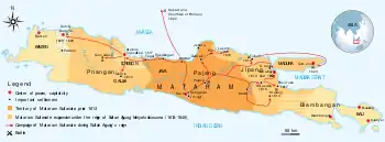 ![]() Extensión aproximada de Mataram en los siglos XVII y XVIII. | ||||||||||||||||||||||||||||||||||