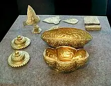 El arsenal de Wonoboyo muestra la inmensa riqueza y el logro artístico del reino de Medang. Además de examinar los bajorrelieves tallados en las paredes del templo, el estudio de la antigua sociedad javanesa también se realiza a través de reliquias arqueológicas. Los objetos dorados de Wonoboyo atesoran la riqueza, el arte y la cultura, así como el logro estético del Reino de Medang. Los artefactos muestran la intrincada obra de arte y el dominio técnico del antiguo orfebre javanés. Se estima que el tesoro data del reinado del Rey Balitung. El tesoro ha sido identificado como perteneciente a un noble o un miembro de la familia real.[30]