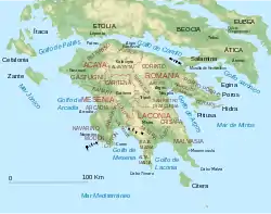 ![]() División administrativa del «Reino de Morea». | |||||||||||||||||||||||||||||||