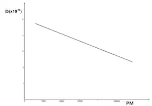 Se puede relacionar el coeficiente de difusión y el peso molecular para una macromolécula esférica anhidra de la siguiente manera: