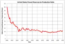 Una interpretación simplista de la relación ha llevado a muchas predicciones falsas de un inminente "quedarse sin petróleo" desde los primeros años de la industria petrolera en el siglo XIX. Esto ha sido especialmente cierto en los Estados Unidos, donde la relación entre reservas probadas y producción ha estado entre 8 y 17 años desde 1920. Muchos han interpretado erróneamente el resultado como el número de años antes de que se agote el suministro de petróleo. Dichos análisis no tienen en cuenta el crecimiento futuro de las reservas.[2]