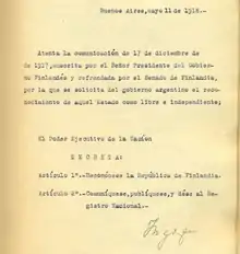 - «Finlandia y Argentina, una lejana amistad». Archivado desde el original el 25 de abril de 2016. Consultado el 22 de octubre de 2019.