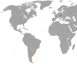 El embajador de Austria en Buenos Aires es concurrente a Uruguay;[2] Austria tiene un consulado honorario en Montevideo.[3] Uruguay tiene una embajada en Viena[4] (siendo el embajador concurrente también para Hungría y Eslovaquia) y un consulado en Salzburgo.[5]