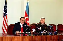 - «Azerbaijan, U.S. to Expand Military Ties». CRI English. 22 de noviembre de 2011. Archivado desde el original el 4 de marzo de 2016. Consultado el 25 de noviembre de 2011.