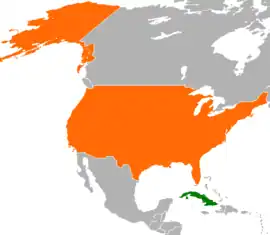 Tras el cambio de Gobierno en Cuba de 1959, Estados Unidos reconoció inicialmente al nuevo gobierno pero pronto las relaciones se deterioraron sustancialmente, y han estado marcadas desde entonces por la tensión y la confrontación. No fue hasta 2015 que se restablecieron relaciones diplomáticas formales entre ambos países con la reapertura de embajadas en sendas capitales. Estados Unidos ha mantenido un embargo por el que resultan ilegales las relaciones comerciales de empresas estadounidenses con Cuba. Antes de 2015 la representación diplomática de los Estados Unidos en Cuba la ejercía informalmente la Oficina de Intereses de Estados Unidos en La Habana, de forma similar a como hacía Cuba en Washington; ambas eran, oficialmente, parte de las respectivas Embajadas de Suiza en ambos países.