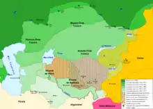 Durante el dominio de la Horda de Oro, Kazajistán quedaría bajo el dominio de la subidivisión conocida como Horda Blanca, uno de los dominios que lucharían por conseguir la unificación del poder de la Horda para ellos mismos, mientras que el Gran Ducado de Moscú, conocido así después de que Daniel Aleksándrovich unificase los principados de Moscú, Nóvgorod y Riazán, fue un aliado de Nogai Kan en sus campañas contra Galicia-Volinia, Valaquia y Polonia.