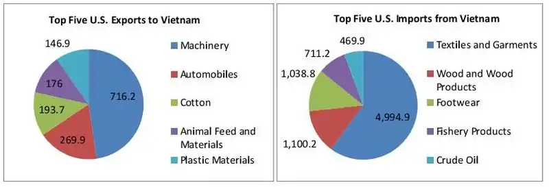 Cifras comerciales de Estados Unidos y Vietnam han crecido al ritmo del producto interno bruto per cápita del Vietnam. (Ver tabla 1)[12]