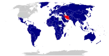 Irán actualmente mantiene relaciones diplomáticas completas con 97 países en todo el mundo.[2] Según los datos publicaron por el Instituto de Reputación, Irán es el segundo país más odiado del mundo, justo detrás de Irak, y ha aguantado esa posición para los tres años consecutivos de 2016, 2017, y 2018.[3][4] El islamismo y la proliferación nuclear son asuntos recurrentes en lo que respecta a las relaciones extranjeras de Irán. En una serie de encuestas internacionales por Pew Research en 2012, en solo un país (Pakistán), la mayoría de su población apoya que Irán adquiera armas nucleares; el resto de población encuestada a nivel mundial se opuso a que Irán adquiriera armas (90–95% de oposición en los países europeos, norteamericanos, y países sudamericanos), y varias mayorías en la mayoría de ellos actuaban a favor de acción militar para impedir que el armamento iraní se materialize. Además, la mayoría de americanos, brasileños, japoneses, mexicanos, egipcios, alemanes, británicos, franceses, italianos, españoles, y polacos (entre otros grupos nacionales) tuvo soporte de mayoría para "sanciones más duras" en Irán, mientras que mayorías en China, Rusia, y Turquía se opusieron a la aplicación de sanciones más duras.[5]