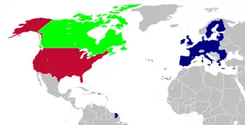 - Esta obra contiene una traducción parcial derivada de «Transatlantic relations» de Wikipedia en inglés, publicada por sus editores bajo la Licencia de documentación libre de GNU y la Licencia Creative Commons Atribución-CompartirIgual 4.0 Internacional.