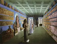 Vista de la exposición de la colección de Campana en la segunda edición de sus Antiche opere in plastica (1851). Los relieves Campana están en largas secuencias en las paredes.