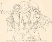Heracles luchando con el toro de Creta, losa encontrada en 1812 y ahora en los Museo Gregoriano Etrusco.