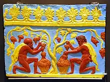 Sátiros cosechando uvas en una baldosa de cresta en el Museo August Kestner, Hannover: