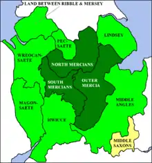 Es probable que la ocupación anglicana de Mercia viera el desplazamiento o la integración de las tribus británicas posromanas. Existe la posibilidad de que algunas de estas comunidades cristianas británicas sobrevivieran a la ocupación anglosajona: Richard Fletcher menciona a Much Wenlock como posible candidato.[1]
