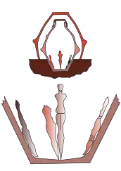 - Los rituales, asociados con el uso del fuego, cuando están en el pozo o fosa, con exclusión de las cenizas, para obtener diversas cosas, probalidades de algún rito de restos de inmolación. También algunos investigadores argumentan que en algunos rituales de la cultura de Cucuteni se han usado figurillas de arcilla antropomorfas, zoomorfas y vasijas binoculares.[20]