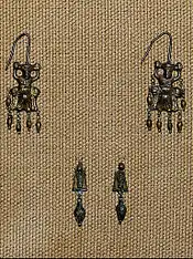 En la esquina sureste de la casa se encontró un jarrón rodeado de seis jarrones debajo del piso. El jarrón central estaba al revés, cubriendo otro recipiente con una tapa, en el que se encontraron cuatro figuras antropomórficas, dispuestas en una cruz y mirando a los cuatro lados del mundo. Dos figuras estaban decoradas con líneas y tenían cabezas y patas completamente negras; los otros dos no eran de color, pero tenían rastros de rojo-ocre.[5]