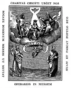![]() Primer escudo de la Unión del Apostolado Católico y actual escudo de las palotinas. | ||