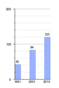 Gráfica de evolución demográfica de Relmo entre 1991 y 2010