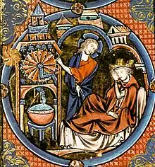 El movimiento rotativo de un tambor regulado por un fluido es conocido por imágenes XIII siglo XIII. siglo. Una miniatura de una Biblia moralizada francesa (hacia 1250) nos muestra, entre otras cosas, este tipo de motores que activan un conjunto de campanas.