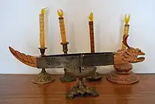 - Las barras de incienso en oriente, una preparación de resinas aromáticas vegetales, a las que a menudo se añaden aceites esenciales de origen animal o vegetal. Esta barra de incienso gradualmente se quemaba cortando unos hilos colocados sucesivamente a lo largo de la longitud de un canal, al cortar los hilos hacía caer un trozo de metal sobre una bandeja a intervalos regulares, causando un «clang», generando una señal cada intervalos regulares.[1]