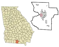 ![]() Ubicación en el condado de Lowndes en el estado de Georgia ![]() | ||