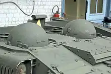 Para reducir el peso del vehículo, se imposibilitó a los tripulantes proteger sus cabezas bajo el techo. Para protegerlos, se agregaron dos cubiertas blindadas hemisféricas (calottes). Estas tenían rendijas de visión, pero para mejorar el campo de visión, su parte frontal podía pivotar hacia atrás como una visera. Ya que una barra entre el techo y el mantelete hubiera dificultado el acceso, la parte delantera del mantelete tiene una sección que encaja en la parte delantera de la cubierta; si la cubierta es retraída y la escotilla abierta, se forma un mayor espacio de acceso. Una interesante característica de este vehículo es el sistema interno de comunicación que emplea. Cuando las cubiertas están cerradas, los dos tripulantes, separados por el motor, no pueden comunicar directamente; no se puede efectuar comunicación radial interna o externa, ya que el vehículo no cuenta con un equipo de radio. Cuando la tanqueta está completamente "sellada", el comandante emplea un sistema de luces blancas, azules, verdes y rojas que pueden encenderse o parpadear, para dirigir al conductor mediante un código predeterminado: