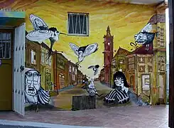 ![]() La gallada (detalle), grafiti hecho por Unkolordistinto del dibujo de Lukas | ||