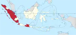![]() La República de Indonesia en rojo | |||||||||||||||||||||||||||||||
