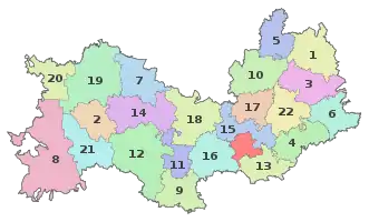 Los distritos son, por orden numérico (véase la imagen):
