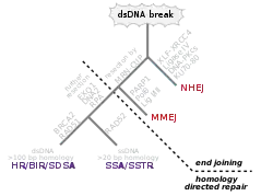 - Esta obra contiene una traducción parcial e incompleta derivada de « Homology directed repair » de Wikipedia en inglés, concretamente de esta versión, publicada por sus editores bajo la Licencia de documentación libre de GNU y la Licencia Creative Commons Atribución-CompartirIgual 4.0 Internacional.