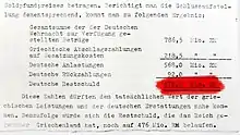 - Nikos Christodoulakis (2014). Germany’s War Debt to Greece: A Burden Unsettled. Palgrave Macmillan. p. 13. ISBN 9781137441959. «[A] Special Report published by the Bank of Greece in 1962 ... specified the amount outstanding to be ... more than tenfold the sum dispensed by Germany.»