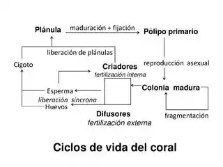 Los corales son organismos pertenecientes a la clase Anthozoa, del phylum Cnidaria. Debido a que son organismos sésiles, su capacidad de dispersión es muy limitada, así que la formación de larvas de vida libre (semovientes) y la liberación de gametos son aspectos esenciales en su propagación. (Brusca and Brusca, 2003).