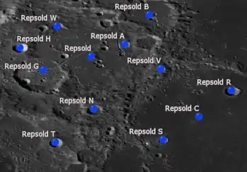 Por convención estos elementos son identificados en los mapas lunares poniendo la letra en el lado del punto medio del cráter que está más cercano a Repsold.