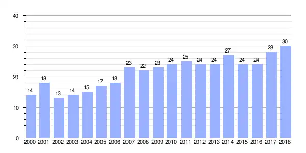 | Gráfica de evolución demográfica de Requián (aldea) entre 2000 y 2018 |