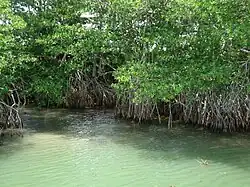 Se han identificado algunas especies indicadoras del grado de conservación ambiental de la zona; entre ellas se cuentan el mangle rojo, blanco y negro; el camarón, el manatí, los cocodrilos y caimanes y los quelonios de agua dulce.