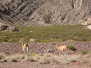 La fauna presente se corresponde a la de las provincias fitogeográficas puneña, altoandina y del monte. Entre los mamíferos se encuentran importantes poblaciones de camélidos, especialmente guanacos (Lama guanicoe) y vicuñas (Vicugna vicugna). También se ha registrado la presencia de pumas (Puma concolor) y zorros (Lycalopex culpaeus).