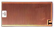 - Lámina grabada: los elementos de láminas grabados generalmente se fabrican con las mismas aleaciones que los elementos de hilo calefactor, pero se producen con un proceso de fotograbado sustractivo que comienza con una lámina continua de lámina metálica y termina con un patrón de resistencia complejo . Estos elementos se encuentran habitualmente en aplicaciones de calefacción de precisión tales como diagnóstico médico y aeroespacial.