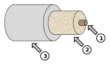- Los elementos tubulares (revestidos) normalmente comprenden una bobina fina de hilo calefactor de aleación con resistencia al nicromo (NiCr), que se encuentra en un tubo metálico (de aleaciones de cobre o acero inoxidable como Incoloy ) y aislado por polvos de óxido de magnesio . Para mantener la humedad fuera del aislante higroscópico, los extremos están equipados con perlas de material aislante tales como cerámica o caucho de silicona, o una combinación de ambos. El tubo pasa a través de una matriz para comprimir los polvos y maximizar la transmisión de calor. Estos pueden ser una varilla recta (como en los hornos tostadores ) o doblados a una forma para abarcar un área a calentar (como en las estufas eléctricas, los hornos y las cafeteras ).