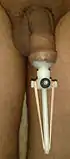 En lugar de que crezca piel nueva o como medida temporal hasta que haya crecido suficiente piel por medio de la expansión del tejido, algunos hombres optan por usar un dispositivo de retención para mantener estirada la piel restante, si la hay, sobre el glande de una manera similar al cinodesma griego antiguo. Puesto que el glande es una membrana interna, originalmente protegida por el prepucio hasta que es removido durante la circuncisión, el objeto de estos métodos de retención es remedar una cubierta protectora para el glande.